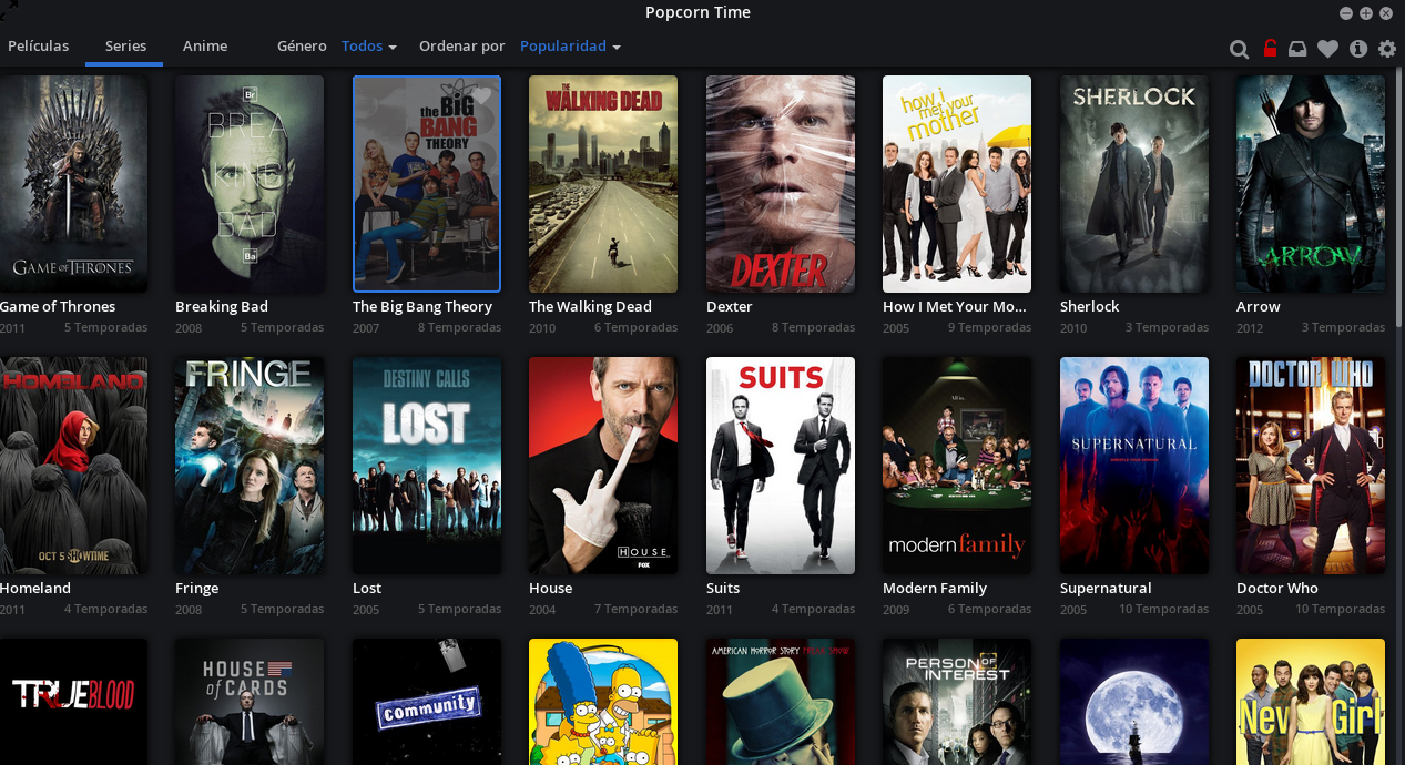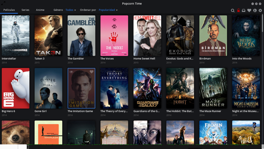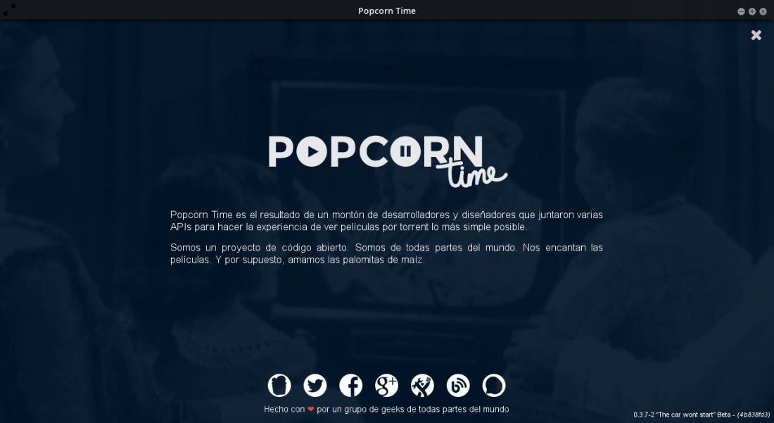 Popcorn Time esta desarrollado con NodeJS, y los ejemplos, capturas y vídeo generado para esta entrada fueron realizados sobre en la distribución de GNU/Linux Debian 8 (Jessie) usando la versión 3.7 del Popcorn.