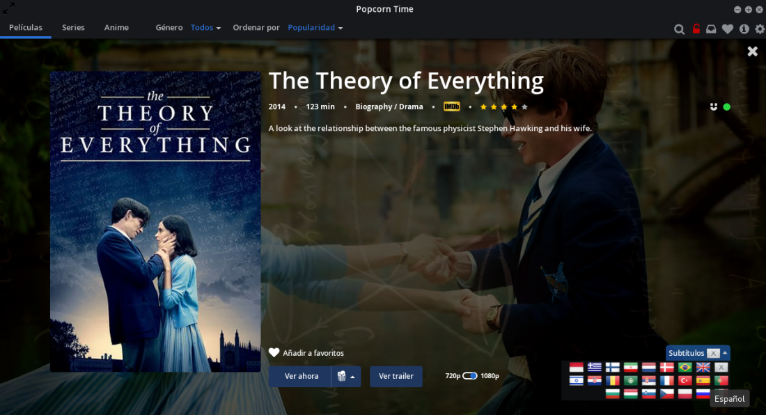 Instalación rápida y recorrido por Popcorn Time en vídeo.